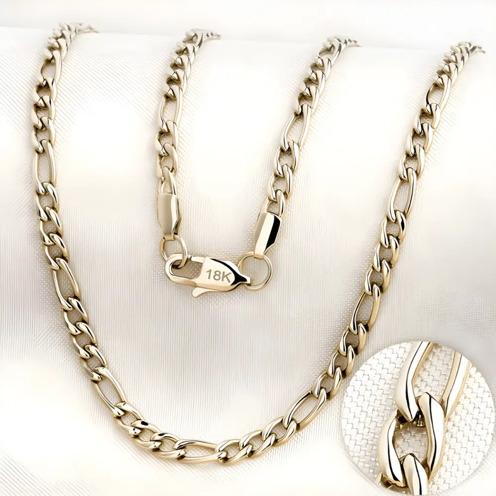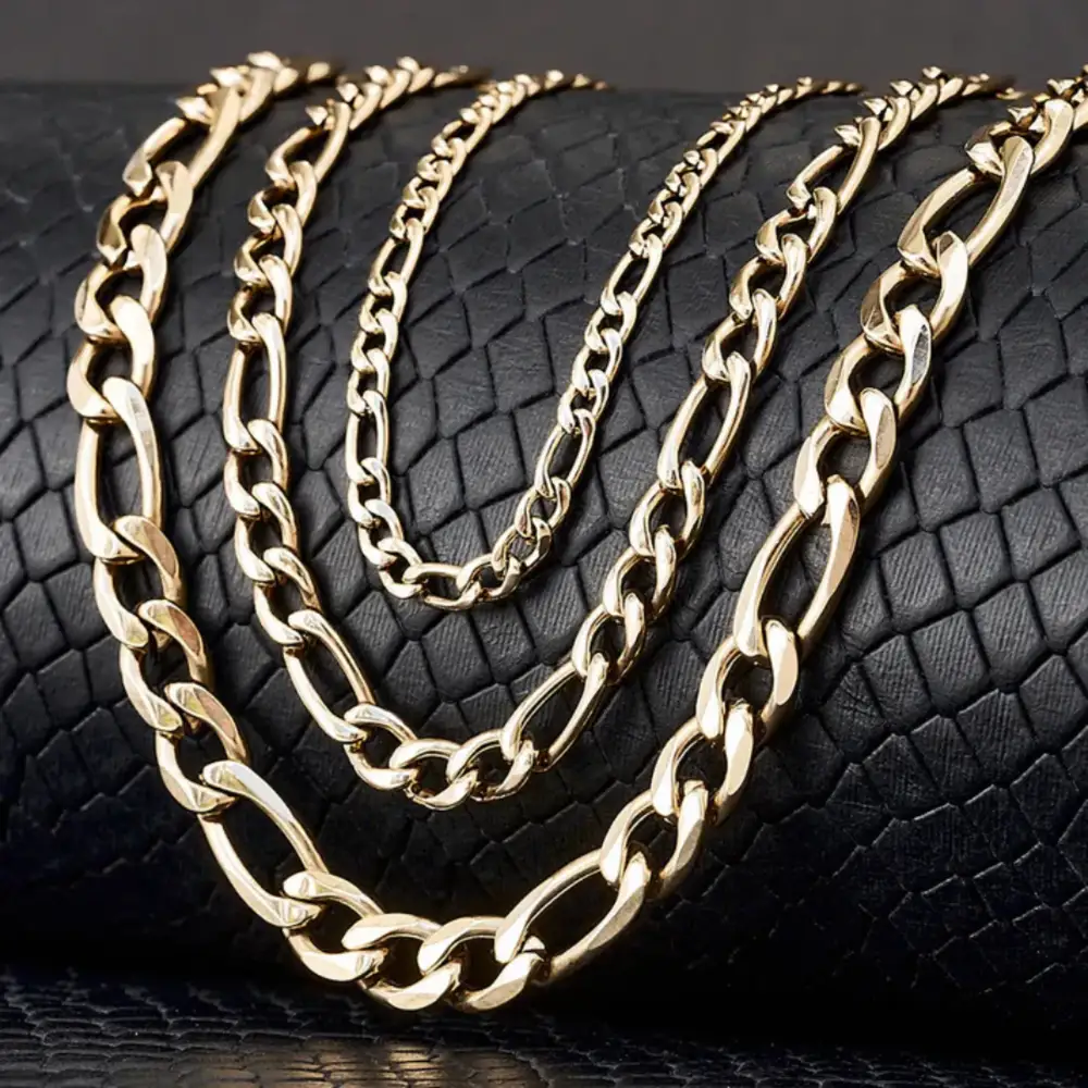 La cadena cartier oro laminado para hombre es un clásico de la joyería masculina, reconocida por su diseño de eslabones rectangulares que aportan elegancia y distinción. Su estilo atemporal la convierte en una pieza versátil, perfecta para usar sola o con dijes.