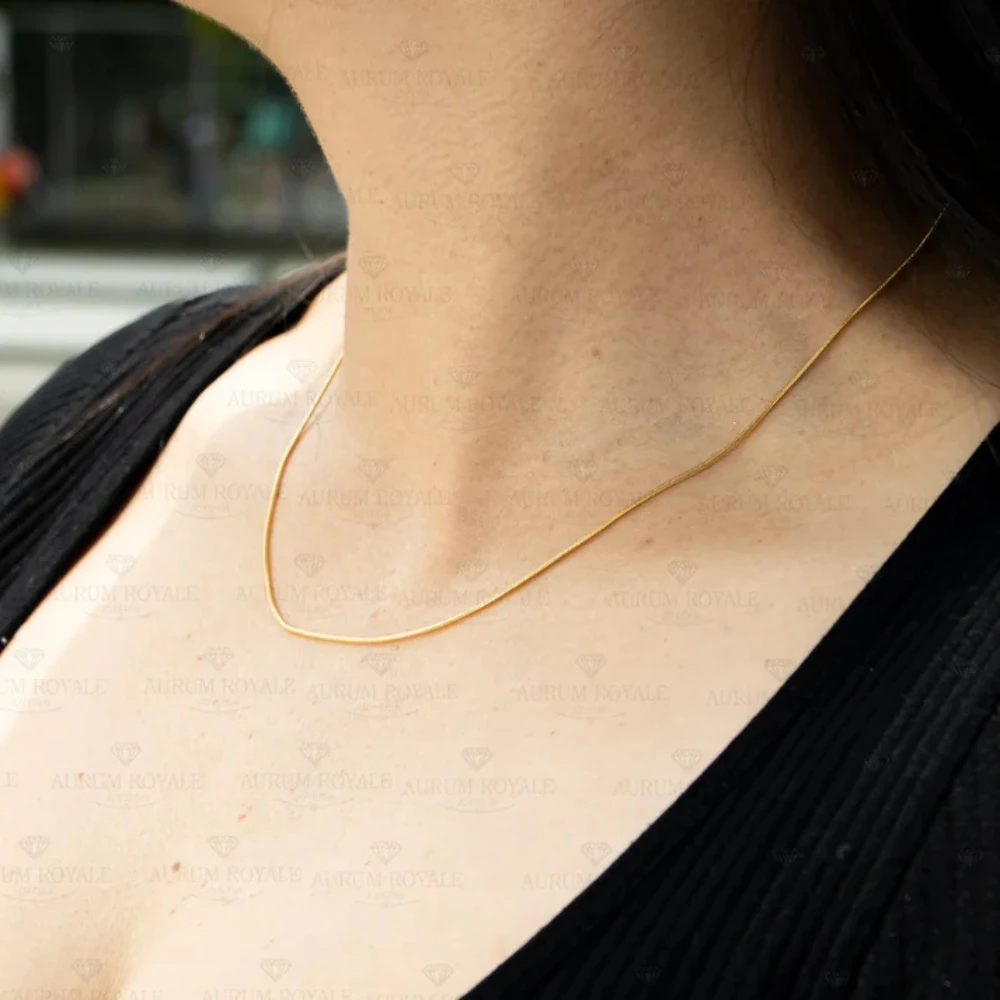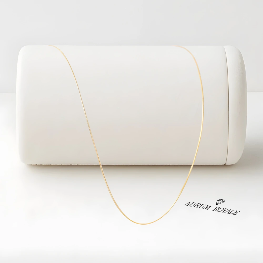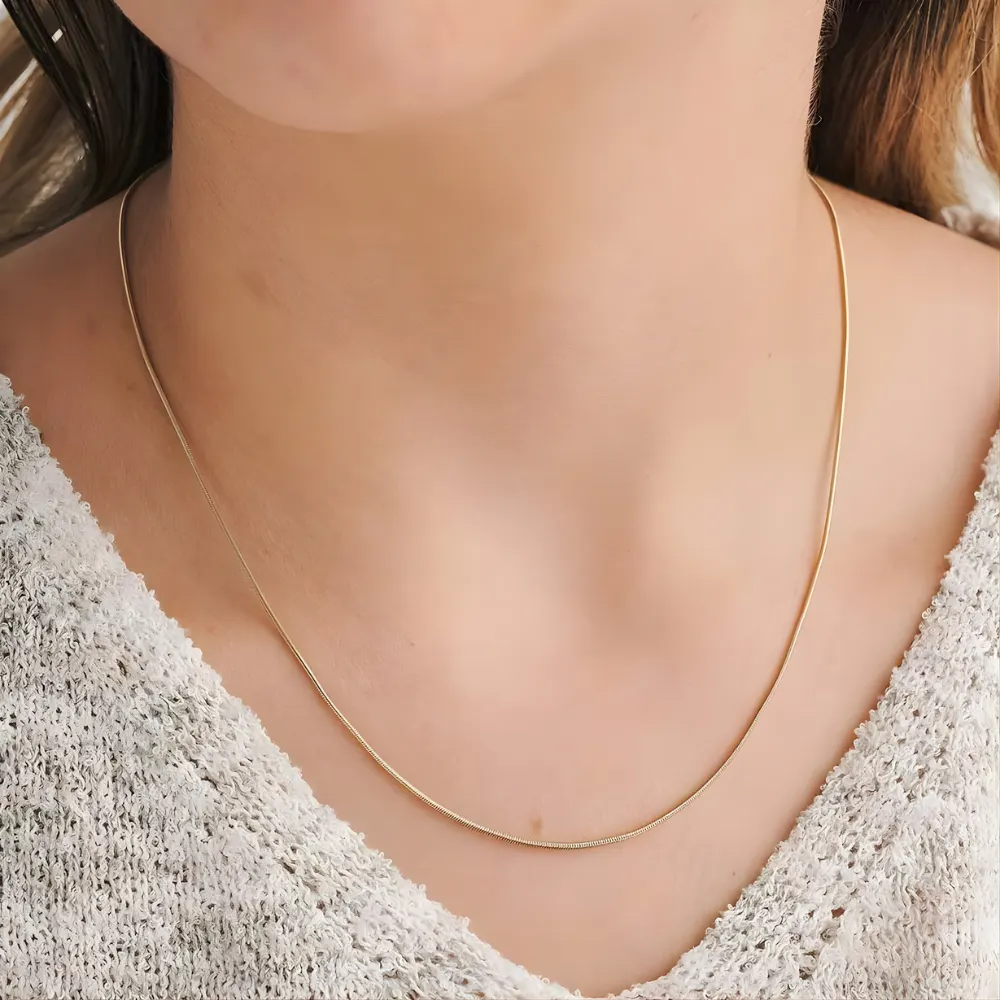 Disfruta de la elegancia sutil con esta cadena tipo hilo en oro laminado 18k para mujer, una pieza delicada que realza cualquier estilo con su brillo fino y sofisticado. Su diseño de 1 mm de grosor y 45 cm de largo la convierte en una opción ideal para usar sola o acompañada de dijes pequeños.