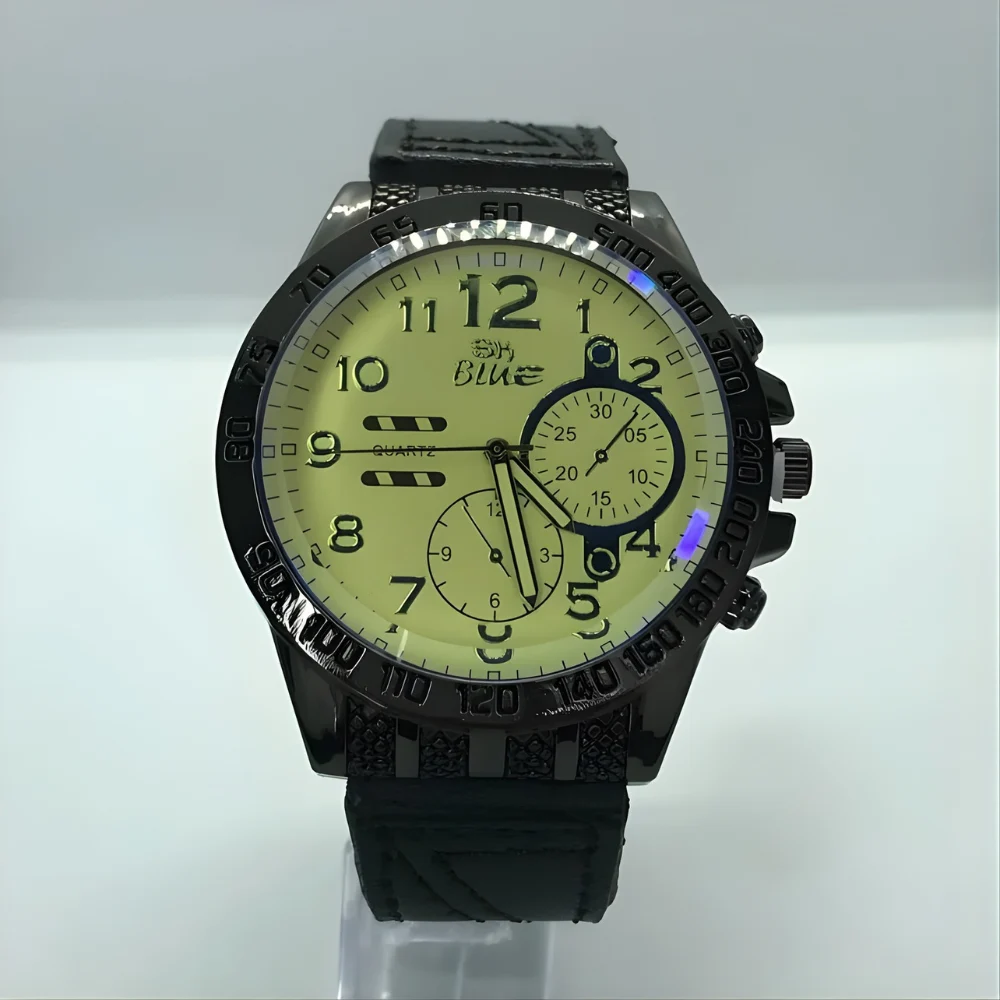1 reloj de lujo estilo deportivo, con diseño moderno y correa negra.