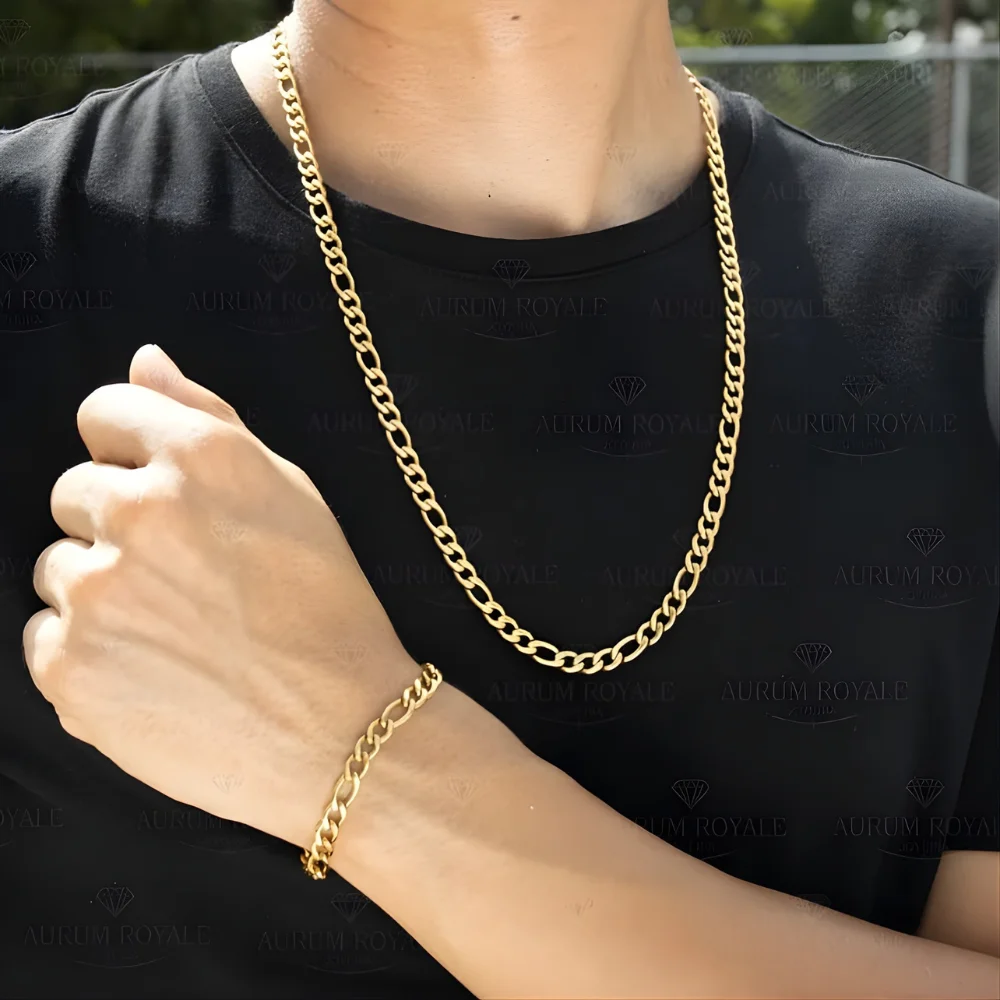 Set masculino estilo Cartier en oro laminado 18k con cadena y pulsera